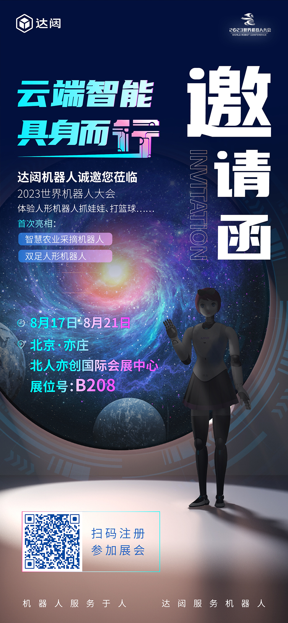 品類豐富,亮點紛呈,達闥將在世界機器人大會B館-B208展位與您一起探討具身智能時代雙足人形機器人如何在真實世界中靈活地為人類服務,一起交流服務機器人在等康養陪護、迎賓導覽、教育科研、農業採摘、業務辦理、配送巡邏等方面應用、發展以及技術創新,共同點亮服務機器人產業觸手可及的未來!