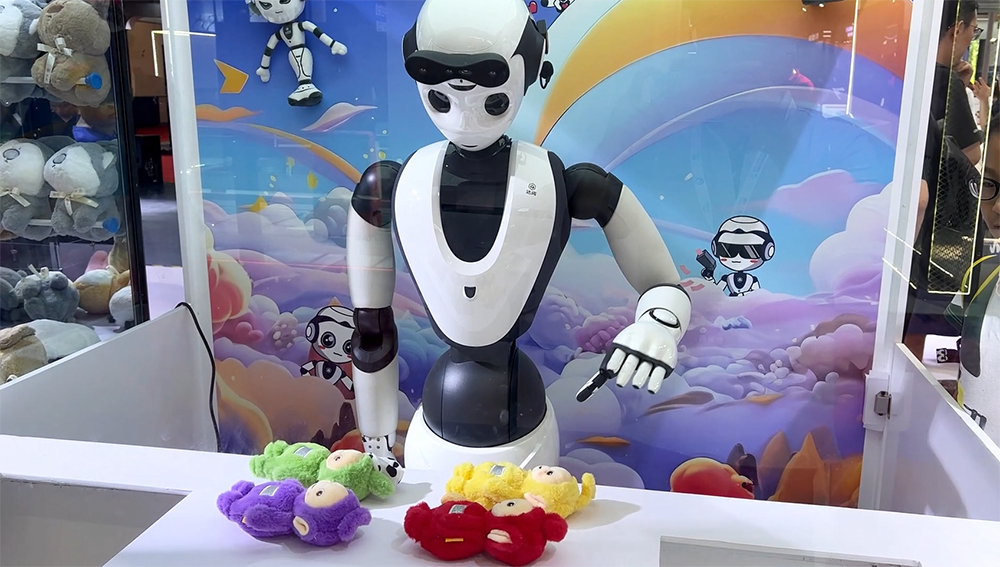 達闥雲端大腦和RobotGPT賦能的Cloud Ginger,不僅展現了卓越的語言對話能力和多模態交互能力,更化身為多種角色,如抓娃娃機器人,在現場跳起《千手觀音》舞蹈,與人類進行投籃大作戰。那柔美修長的手臂、整齊劃一的動作、乾脆利落的投籃姿勢、精準的抓娃娃技巧都令觀眾大開眼界,滿滿的參與感,現場氛圍十分火爆!
