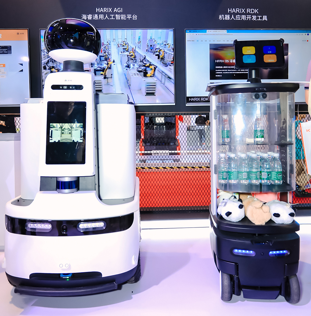 達闥雲端大腦核心技術展區是機器人智能的核心所在,在這裏,人們通過多媒體了解海睿AGI平台和RobotGPT。海睿AGI平台是海睿通用人工智能平台,支持多種主流的GPT大模型服務,可定製行業大模型、訓練大模型。基於海睿AGI平台,達闥訓練出了業界領先的機器人多模態大模型RobotGPT。