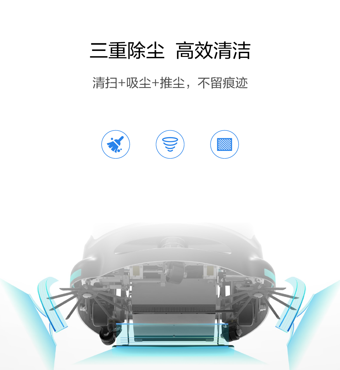 清扫+吸尘+推尘,不留痕迹。
